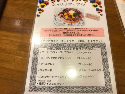 ランチメニューは、主にホットサンド・ライス・ワッフルと3種類に分かれていて、プラス300円でドリンクセットがついています。