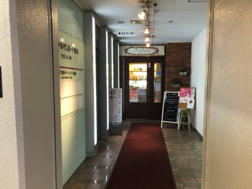 廊下の一番奥が入口となっております。少し奥まっていて見つけ辛いかもしれませんが、アリスがウサギを追うようにしっかり探してみてくださいませ。
