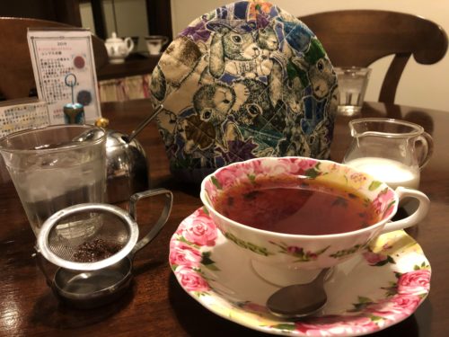 アリスになった気分でイギリス風を吹かせながらのお茶タイム。結局3杯もいただいてしまいました。