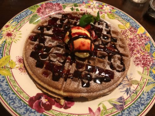 自家製で作られたワッフルはふんわり柔らか。卵を沢山使い、かなり一生懸命泡立てをされているとのこと。