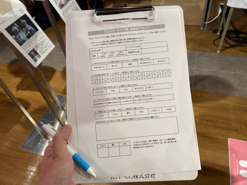 会場ではアンケートを記入すると、1日先着200名様限定でマスクがプレゼントされます!