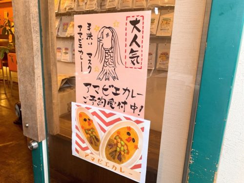 気になるのは、噂の「アマビエカレー」。手間がかかるメニューのため要予約です。コロナの早期退散を願って、次回はこちらを食べてみたいと思います!