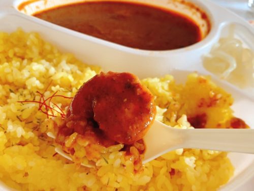 名前のとおり、ルーはクリーミーで贅沢な味わい。大きな海老がごろごろ入っていて、食べごたえも充分でした。辛口ではじんわり汗ばむほどの辛さで、ビールにも合いそうです。
