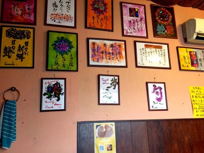 オーナーさんの書いた色紙が飾られています。