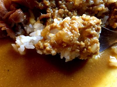 キーマはひき肉のうま味とカレーのうま味が野菜のルーは野菜の甘み以外にも感じます。