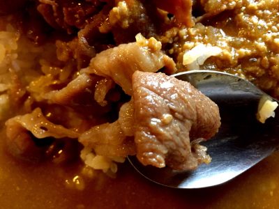サラサラタイプのボルケーノもご飯に「えいやっ!」と言わんばかり、しっかりかけて食べたくなるルーです。ポークソテーも家庭の懐かしさも感じる美味しさです。甘辛くご飯と一緒に食べても美味しいと思います。
