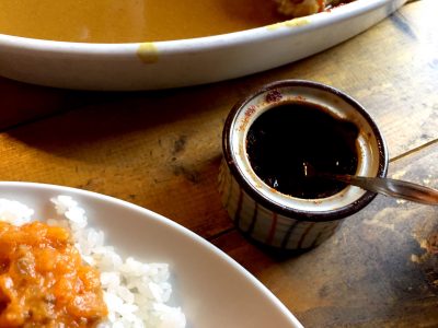 その語、「昔は別容器にカレーを入れて出していたんだ、するとカチャカチャカチャ・・・つて音がするんだよ。食べ方とか、しつけを煩く言われて育ったから「何だ?」って思って見るとお客様がスプーンで容器から綺麗にカレーを取っている音だったんだ、もう、ご褒美の音だと思ったね」という話や人生の話等、熱く語ってくれます。