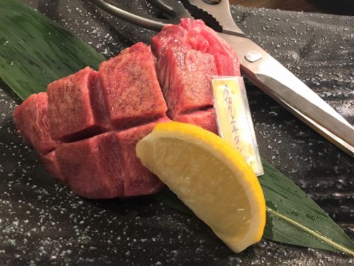 さてさて、ここから本格的に焼肉コース。まずは厚切り上牛タン。