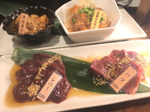 この極上のお肉だけで十分満足なのですが、さらに特選牛のホルモンやレバーも。