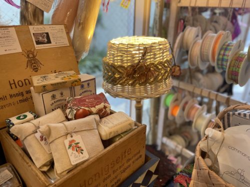 特に物作りをする方などは遠方からリボンを求めてこられるそうです。そのほか、ランプや籠のインテリア雑貨なども売れているそう。