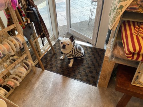 写真を撮っていたら、「ふがふが」と声がして振り返ると、こんなに可愛いスタッフさんが!安藤くんというお名前だそう。「こんにちは」となでなでしたら、お店のバックルームに消えていきました。クール!