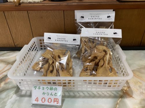 ダチョウの卵を使ったかりんとうやクッキーなども置いてありました。ダチョウの卵を使う時は、砂糖を控えないと甘過ぎてしまうそうです。クッキーを頂きましたが、濃厚かつ上品なお味のクッキーで、あっという間になくなってしまいました。高森町の観光協会に置いてあるそうです。