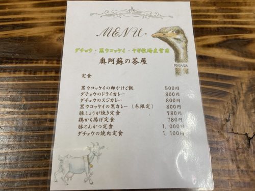 「奥阿蘇ダチョウ牧場 グリーンフィールド」は、「奥阿蘇の茶屋」というダチョウ料理が食べられるお店も経営されております。牧場より山を降りてきて、国道325号線沿いです。