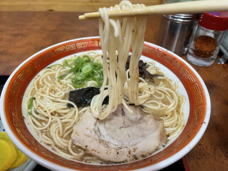 伝統的な熊本ラーメンらしい中太麺で、程よい硬さ。