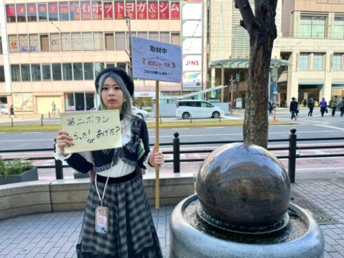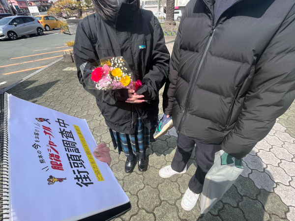 調査を行ったのは玉名駅前。卒業式後の高校生を捕まえます!