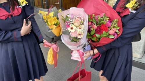 多くの卒業生たちが「花束・花」と答えてくれました。