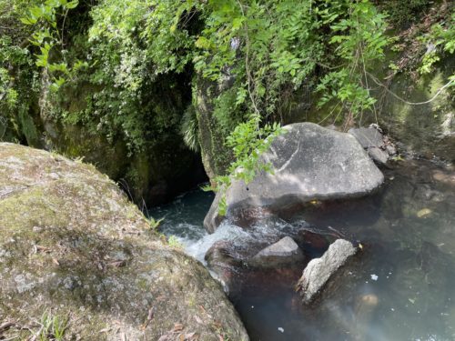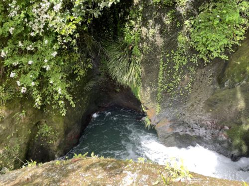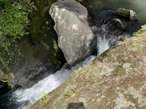 あまりの音と水が渦を巻いている滝つぼの神秘的な姿に、引き込まれそうになります。柵などはありませんので、眺める際はくれぐれもお気をつけてくださいませ。