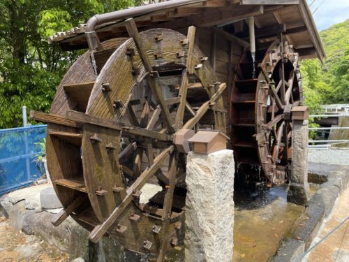 山道の運転の休憩スポットとして、是非立ち寄ってみてくださいね。これから日差しが強くなるにつれて、水車から弾ける水は宝石のようにきらめくかと思います。