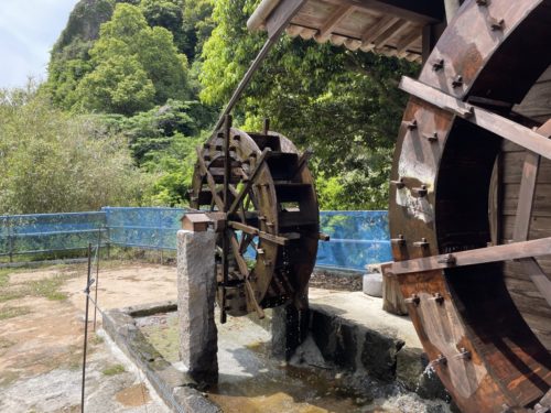 ラブパーキングから車で10分くらいの場所に水車があります。小さな癒しスポットですが、河内方面に行く際は是非見て欲しい場所です。
