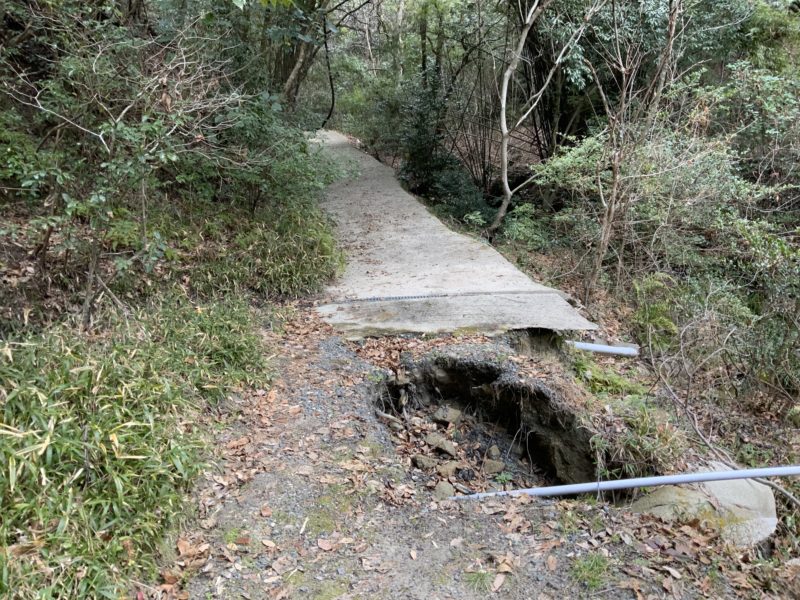 更に進むと足場が崩れています。危ないので気をつけてゆっくり進んでいきましょう。