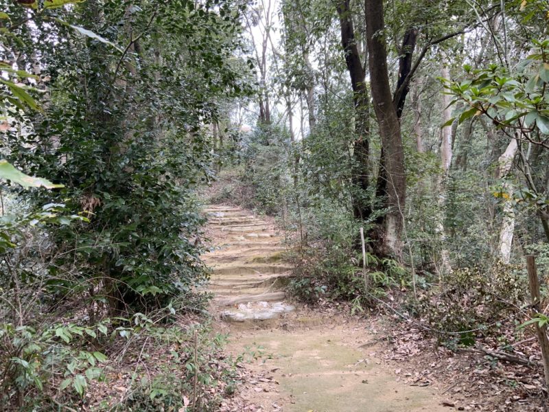 ここから階段が続くので、自信がない人は杖をどうぞ。少し進むと