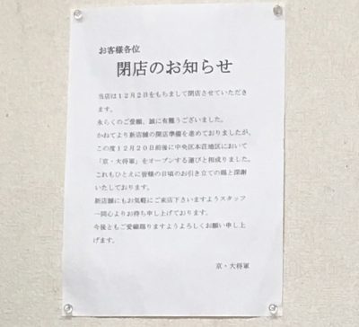 ※移転オープン後は「京 大将軍」のHPでお知らせがありますので、要チェック!