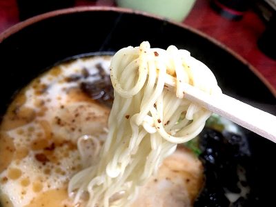 プリっとした食感が光る中細ストレート麺!熊本ラーメンの王道麺といってもいいかもしれません。