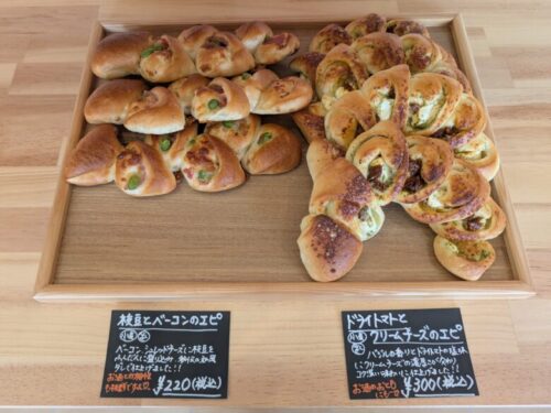 枝豆とベーコンのエピ ¥220 ドライトマトとクリームチーズのエピ ¥300