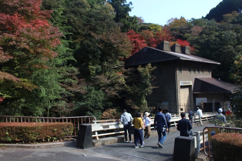 そしてやってきたのは菊池渓谷の入り口にほど近い、菊池川第五発電所。ちょうど紅葉の始まりの時期でした。