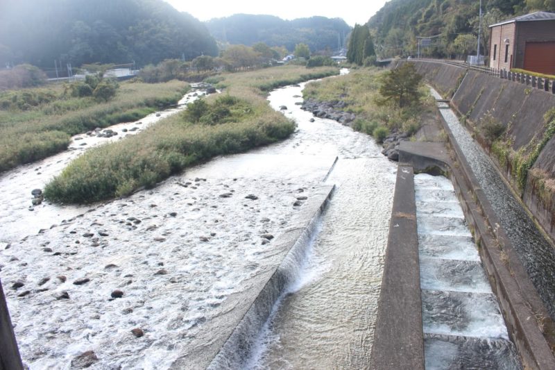 川の各所に取水堰があり、発電所に運ばれていく水、川に戻る水、農業用水として使われる水など振り分けられています。