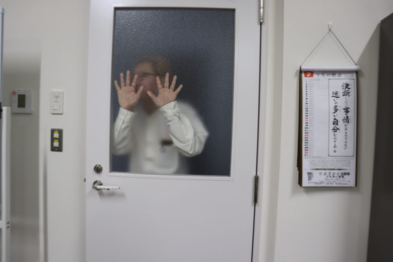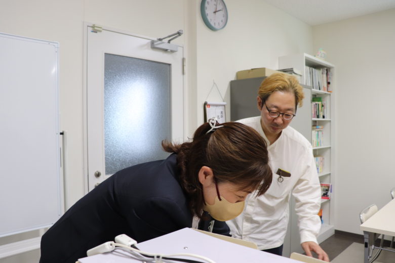 伊藤が老眼トークを続ける中で黙々と準備を行う坂田さん。