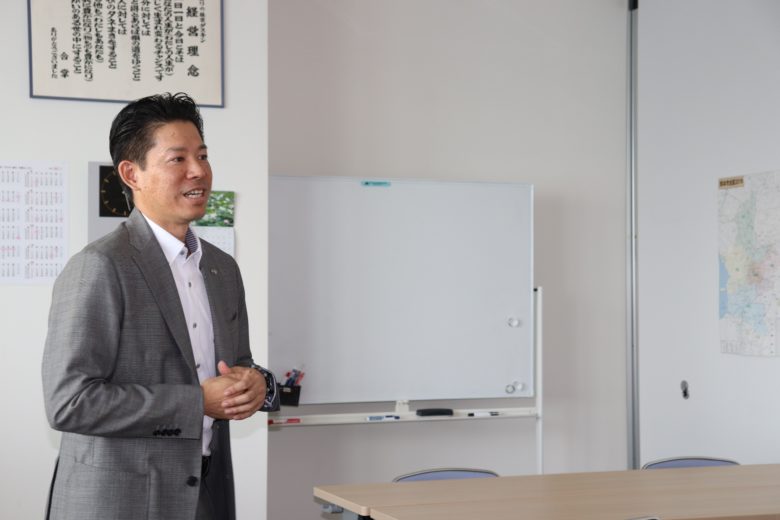 「ダスキン熊本の日髙と申します。よろしくお願いします。ぜひ弊社の箱を覗き込んでください。見えますから」