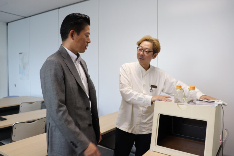 一見、普通の箱に見えますが、実はダスキンが数十年前に手作りした”見える装置”なんだそう。