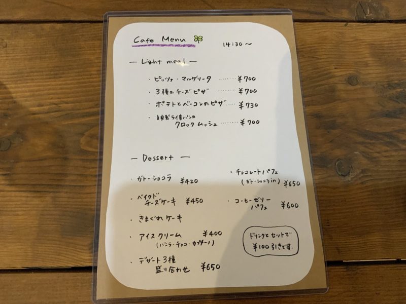 どれも美味しそうですが、今回は15時過ぎにお邪魔したので、カフェタイムのメニューから。