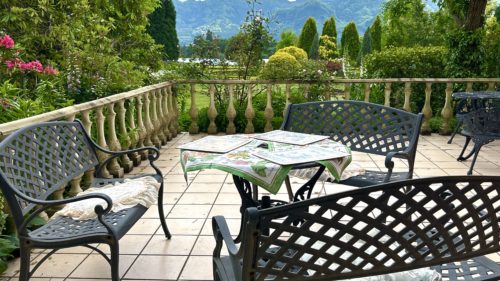 テラス席からお庭が見渡せてお嬢様気分でございます。