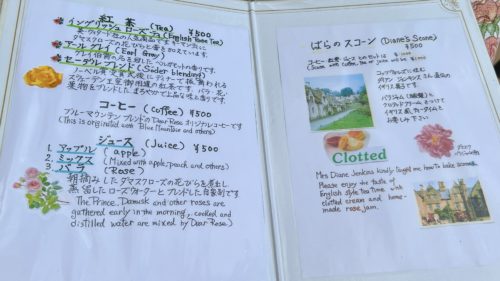 奥様お手製のばらのスコーンや、自家製バラジュースが頂けます。