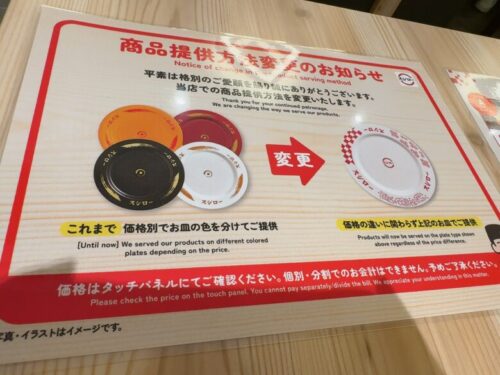 その他の変更点は、価格によってお皿の色が変わっていたのがすべて統一になりました。