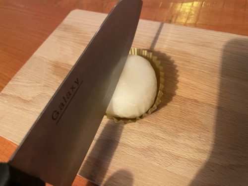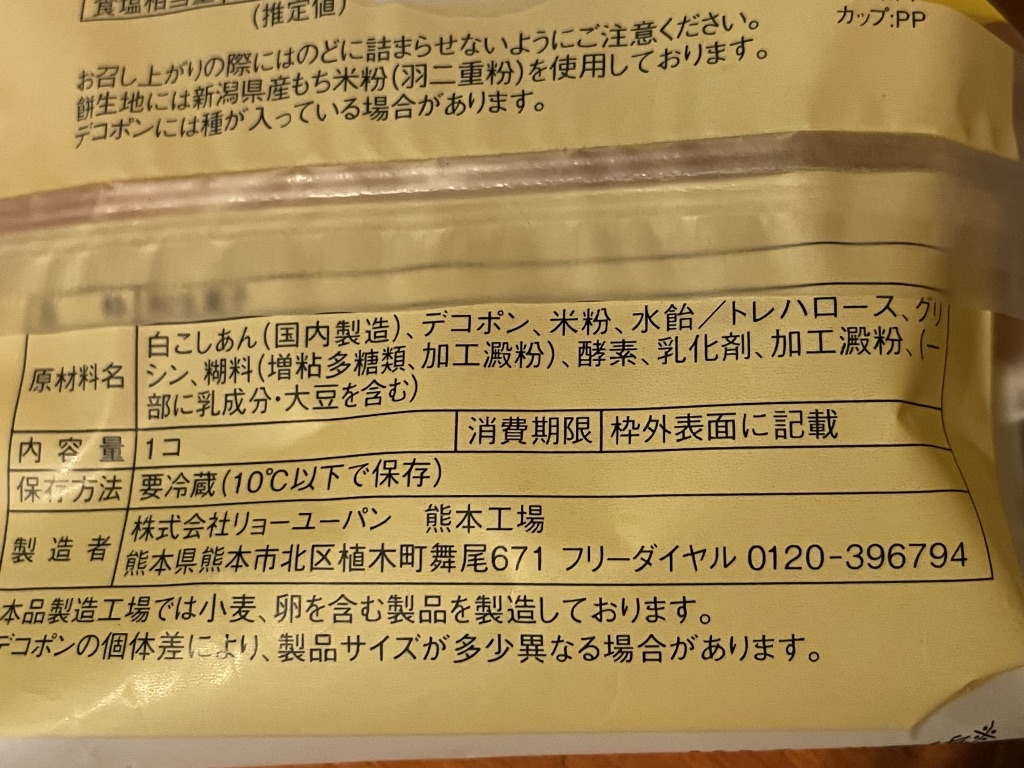 外から、餅生地➡︎白こしあん➡︎デコポンという順番で層になってます。