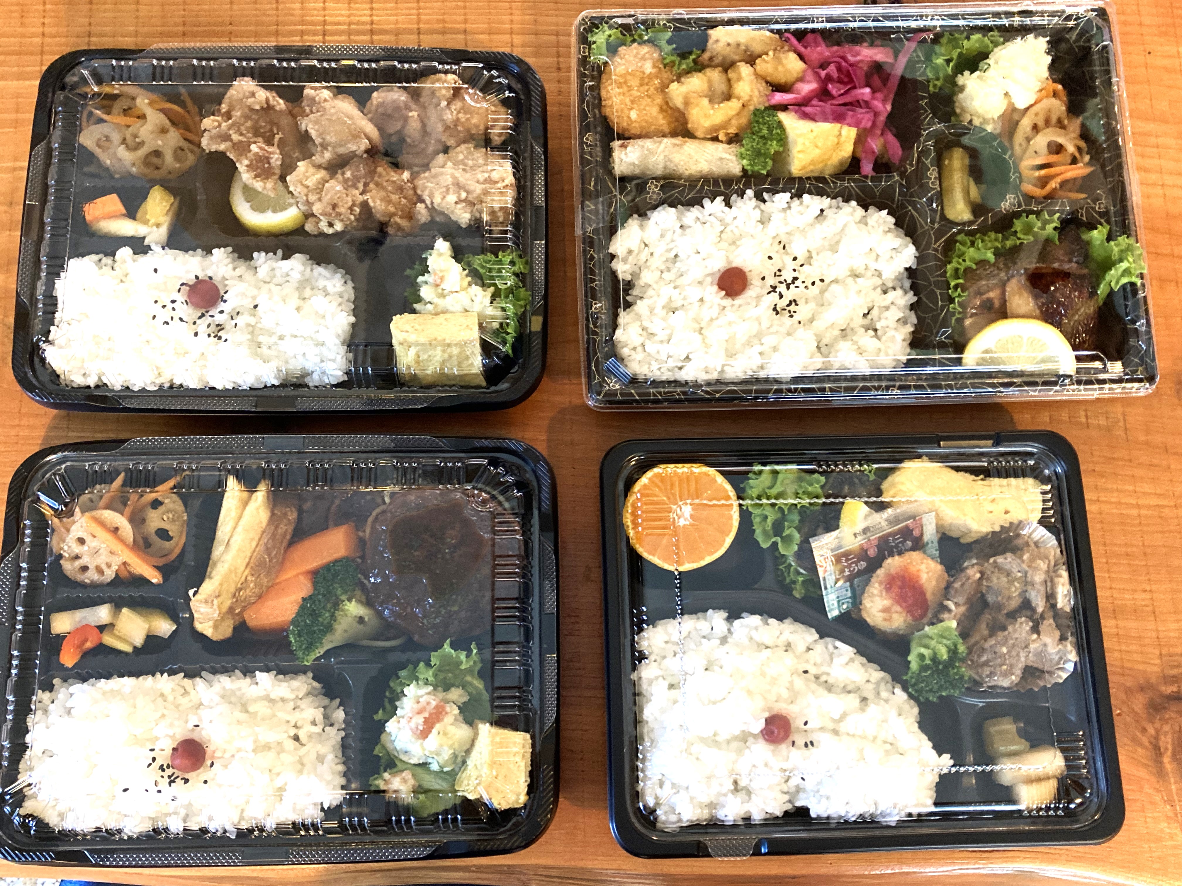 今回買ったのは、唐揚げ弁当700円・煮込みハンバーグ弁当700円・海弁当1000円・おまかせ弁当500円。