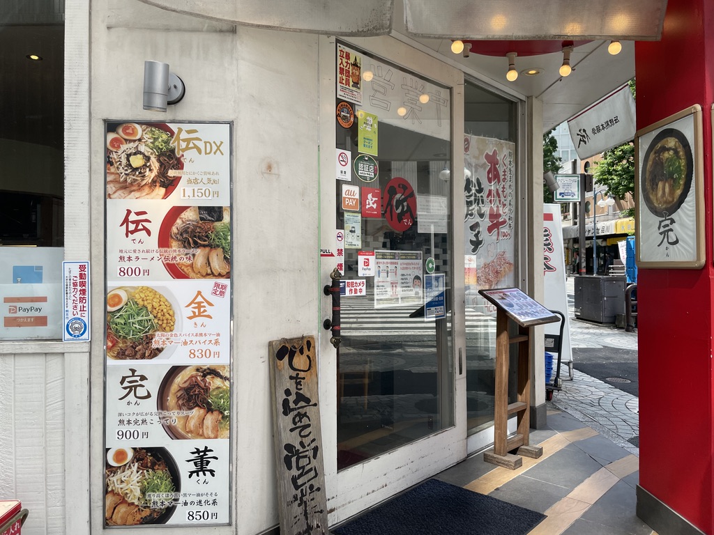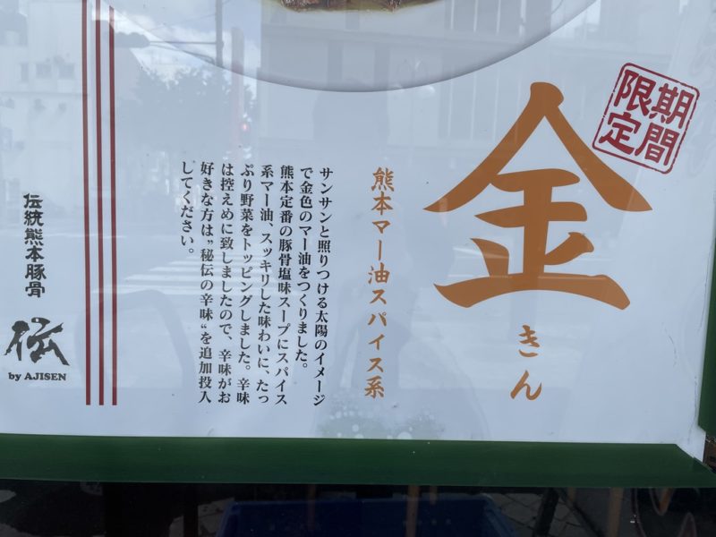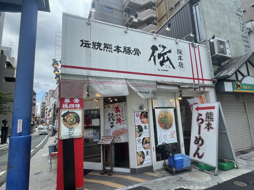 銀座通りに「熊本らーめん」という看板があったら、そこがラーメン伝です。8月いっぱいまでの予定なので、早めに食べに行って下さい。