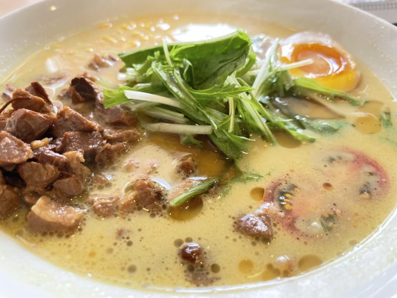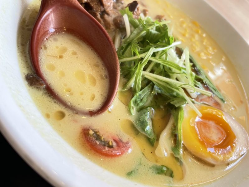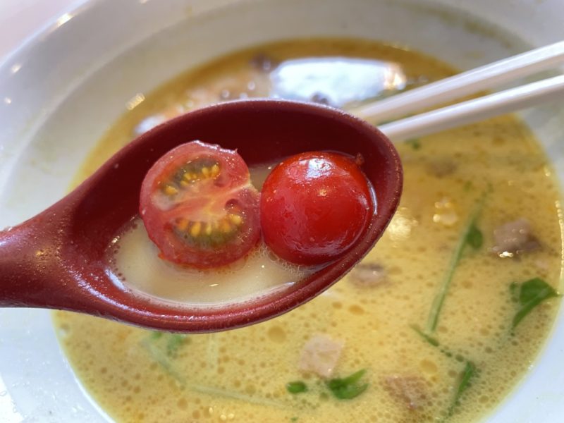 インド系のスパイスが、味覚を突っつきます。しかし、豚骨がまろやかだからスパイス系苦手な方もスルッといけちゃいそう。