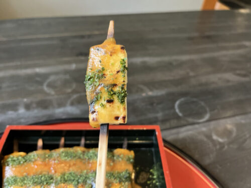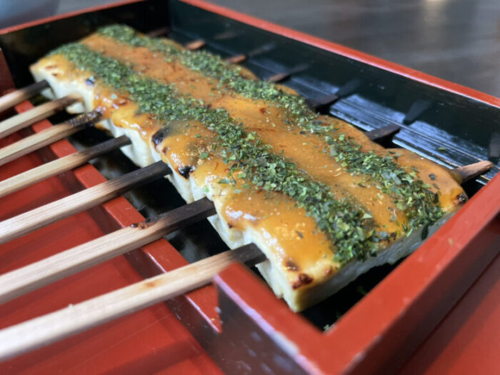 メインの田楽は香ばしく焼いた豆腐に伝統の甘味噌がかかっています。