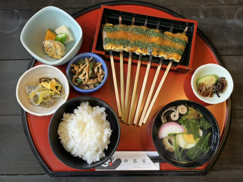 現在予約なしで食べれるメニューは田楽定食のみとなっております。事前に予約があれば、だご汁、懐石、からあげもご注文できるそうです。
