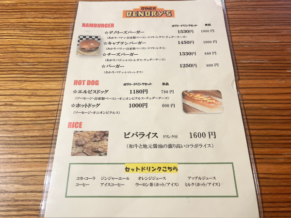 メニューはハンバーガーをメインとして、ホットドック、ビバライスが並びます。