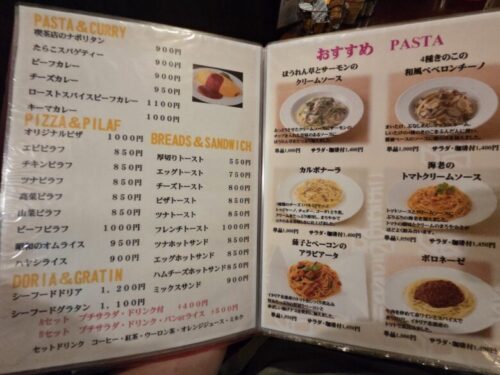 他にもカレー、シチュー、ナポリタン、トースト、ケーキ、そしてパフェ等々…まだ食べてないメニューがたっくさん!いつの日か、このメニューたちを制覇したい!