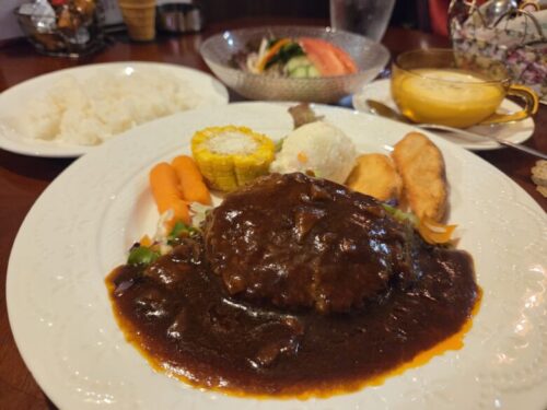 カフェのハンバーグって、なぜこんなに幸せな気持ちにさせてくれるのでしょう。