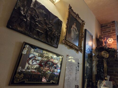 先ほどの本棚同様、壁に飾られた絵や彫刻もレトロな存在感を放っていますね。
