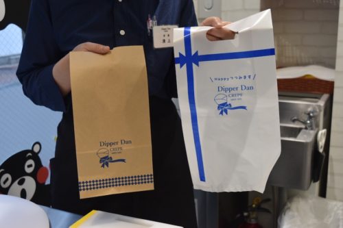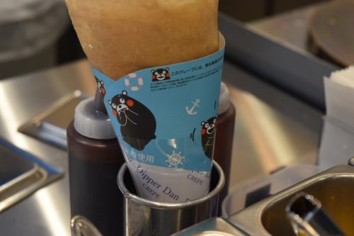 クレープの紙にもくまモンがいます。くまモンってこんなにも表情豊かだったんですね。
