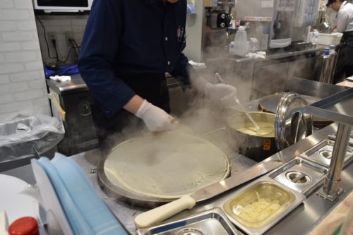 クレープ生地は、1枚1枚作り置きせずに注文を受けてから焼くので、店内はフワ〜と焼き立てクレープの甘い良い香り…。