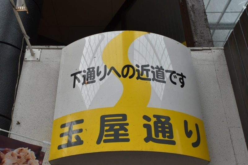 新市街アーケードから玉屋通りに入る道。「下通への近道」が本当なのか編集部の伊藤と山田で検証しました。